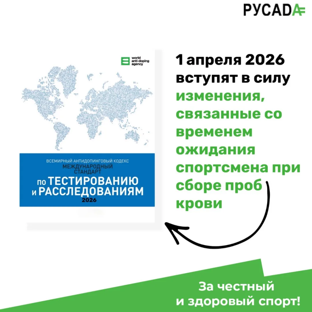 обновленный Международный стандарт по тестированию и расследованиям 2026 года с изменениями, связанными со временем ожидания Спортсменами при сборе/сдаче проб крови, вступает в силу 1 апреля